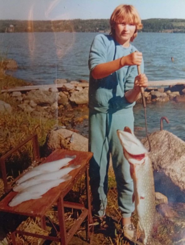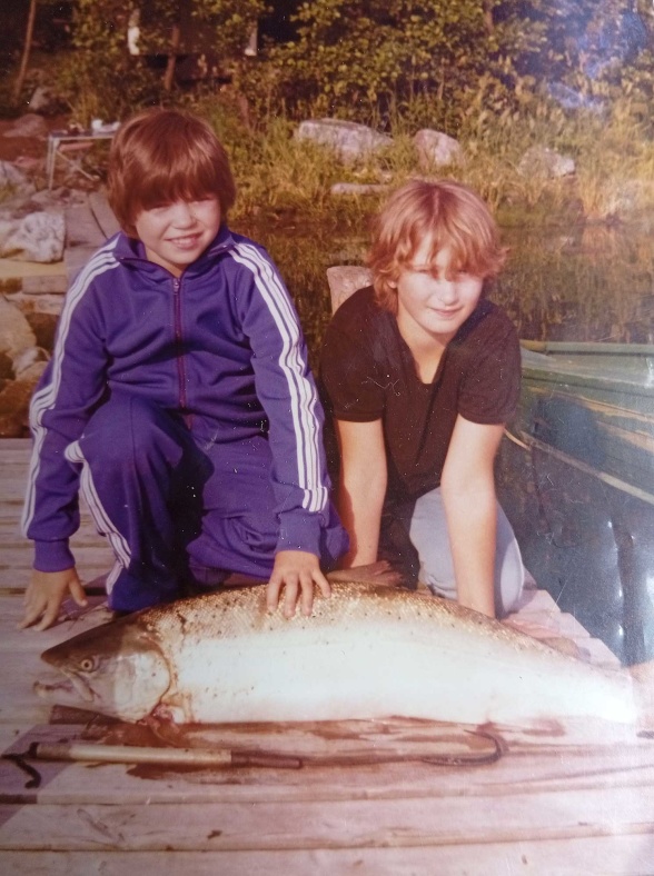 Jag minns speciellt två tillfällen. En gång då jag och pappa fick upp en stor lax i nätet och den jade en bricka i ryggen. Det var en inplanterad Weichelöring och vi skickade brickan till sötvattenlaboratoriet. Pappa uppskattade vikten till 20 kg. Likaså hade vi ett kompispar ute med barn i samma ålder som jag och min syster, de skulle sova över. Pappa hade köpt en långrev och jag och Mattias tänkte att vi ville pröva den. Vi var kanske 11-12 år. Vi åkte ut för att vittja den och vi var inte vana vid att hantera en långrev.